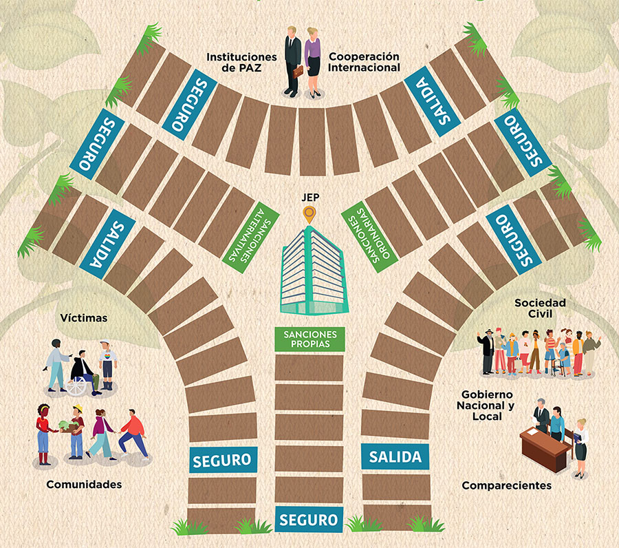 El Parqués Especial para la Paz es una herramienta pedagógica y participativa diseñada para sensibilizar a los participantes sobre el paradigma de la justicia restaurativa y su aplicación en los TOAR en el marco del Sistema Restaurativo de la JEP. A través de la adaptación del tradicional juego de parqués, se fomenta la reflexión sobre el tejido de actores que intervienen en los procesos restaurativos y momentos procesales.